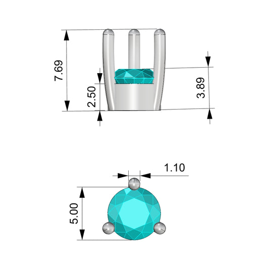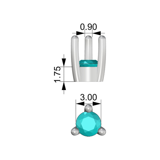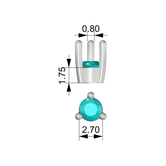 Earring - 3 prong stud setting - 3mm 0.10ct