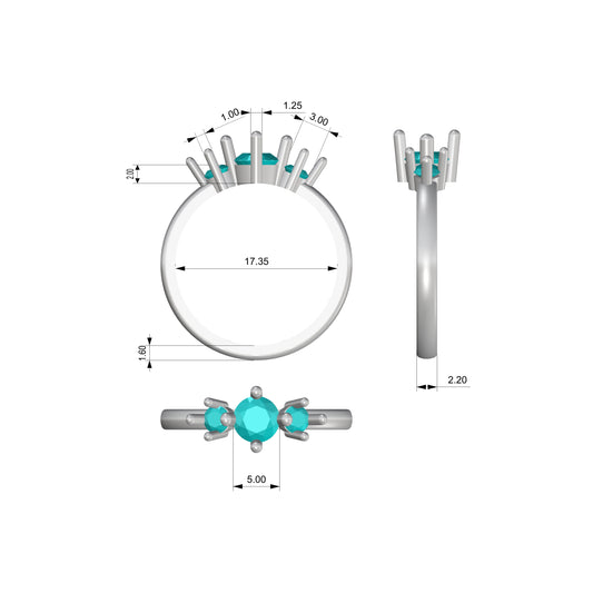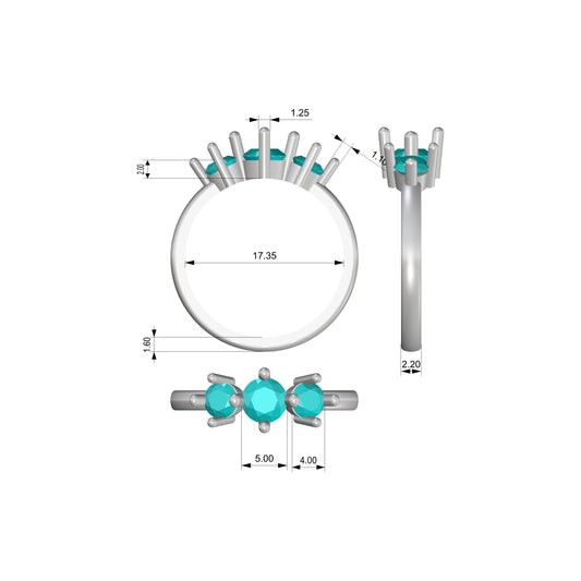 Ring 3 stone compass ring model setting for engagement or fashion ring low with 5mm and 4mm gems finger size 7 US 1cttw