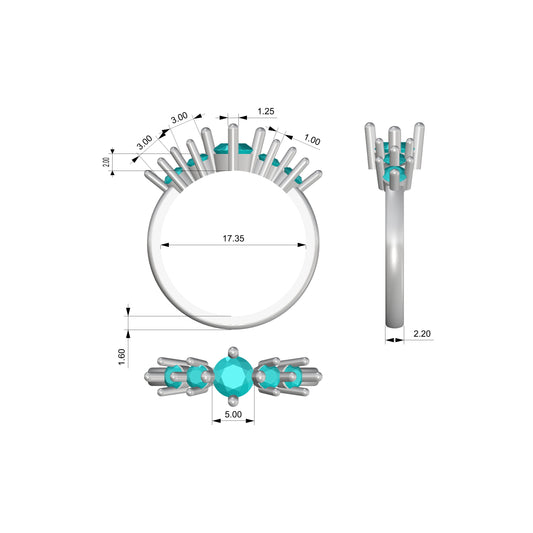 Ring 5 stone compass ring model setting for engagment or fashion ring low gem sizes 5mm 4mm 3mm finger size 7 US 1.20ct tw